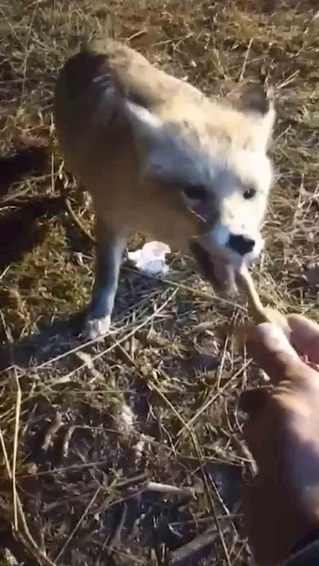 Ağrı’nın Patnos ilçesine bağlı Değirmendüzü köyünde bir evin bahçesine giren aç tilkiyi gören ev sahibi Turgut Demir, tilkinin aç olduğunu fark edince onunla sohbet ederek kendi elleriyle besledi.