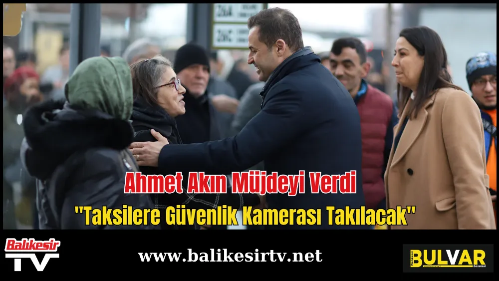 Balıkesir Büyükşehir Belediye Başkan Adayı Ahmet Akın, Balıkesir ve ilçelerindeki tüm taksici esnafının araçlarına ücretsiz güvenlik kamerası takılacağını müjdeledi.