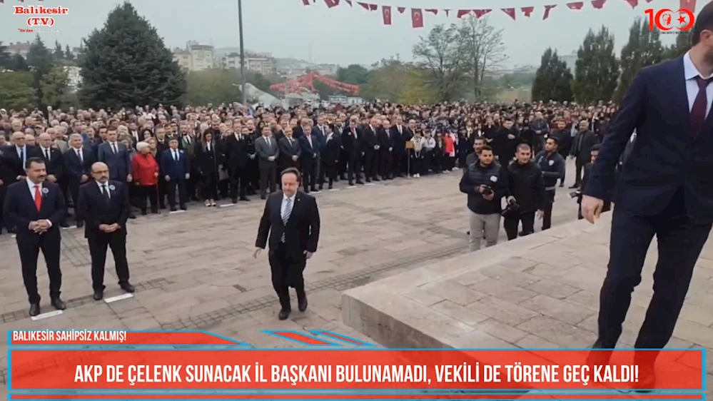 Balıkesir'de 10 Kasım Atatürk'ü Anma Günü kutlamaları kapsamında düzenlenen çelenk sunma törenine AKP Balıkesir İl Teşkilatı vekili geç geldi