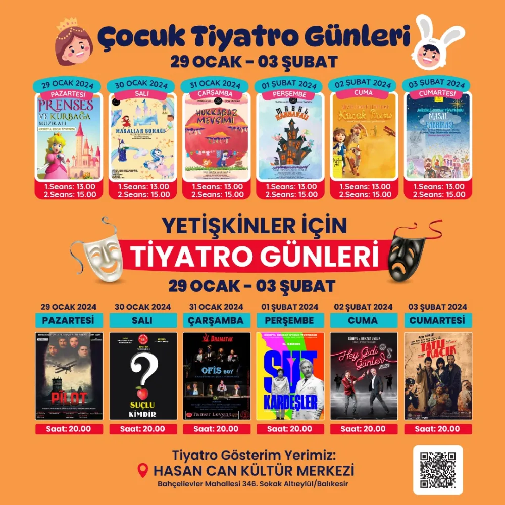29 Ocak Pazartesi günü başlayıp 3 Şubat Cumartesi gününe kadar sürecek olan tiyatro etkinlikleri programı şöyle: