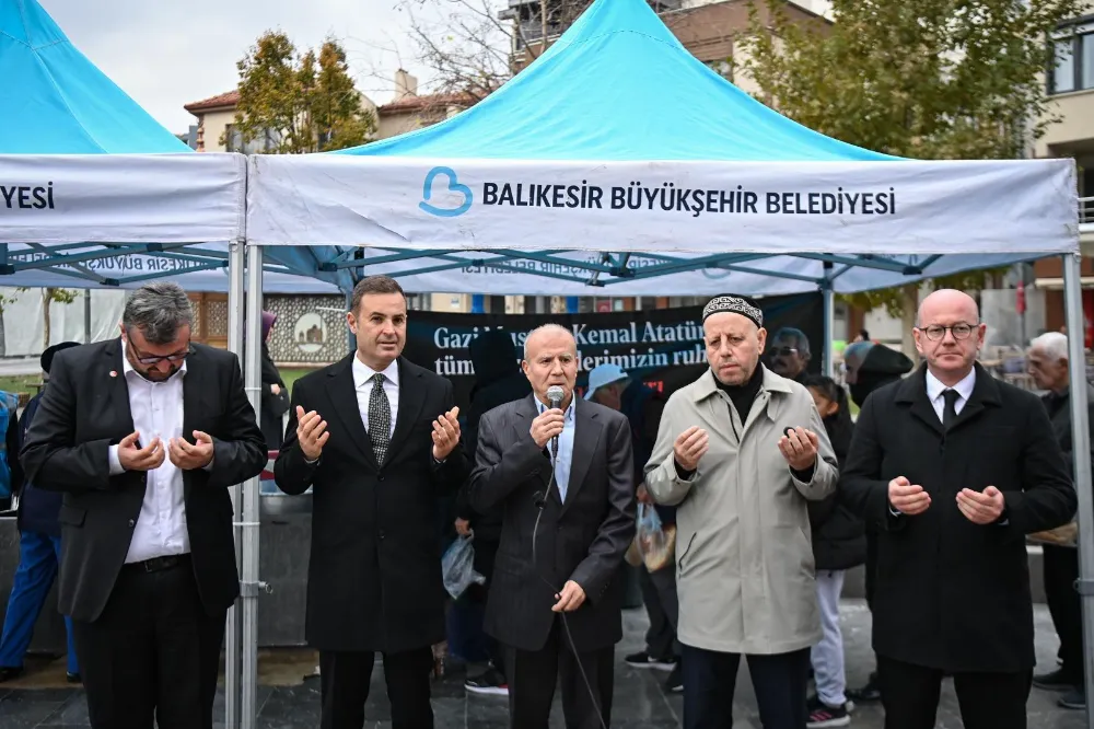 Karesi İlçe Müftüsü İsa Gürler tarafından okunan duada “Ömrünü Türk milletine ve vatanına adamış, hayatının 18 yılı cephelerde geçmiş, gazilerin gazisi Gazi Mustafa Kemal Atatürk’ü ebediyete irtikalinin yıldönümünde şükranla, rahmetle ve minnetle anıyoruz.” ifadelerine yer verildi. Gürler okuduğu duada şu ifadeleri kullandı; “Türk milletinin ve dünyanın ender yetiştirdiği en büyük devlet adamlarından biri, deha sahibi bir asker, düşmana göz açtırmayan büyük bir komutan ve devlet adamı aynı zamanda büyük bir düşünce insanı, ordularımızın başkomutanı, Cumhuriyetimizin kurucusu, ömrünü Türk milletine ve vatanına adamış, hayatının 18 yılı cephelerde geçmiş, gazilerin gazisi Gazi Mustafa Kemal Atatürk’ü ebediyete irtikalinin yıldönümünde şükranla, rahmetle ve minnetle anıyoruz.Bu vesileyle Gazi Mustafa Kemal Atatürk’ün silah arkadaşlarını ve ebediyete irtihal etmiş tüm gazilerimizi, bayrağımız, toprağımız ve kutsal değerlerimiz için can vermiş tüm aziz şehitlerimizi rahmetle, minnetle anıyoruz. Ruhları şad olsun. Yarabbi, 16-18 Mayıs’ta ülkemizi işgale kalkışan emperyalistleri ülkemizden kovma ve silahlı mücadele kararı alan Kuvayı Milliye’nin temelini atan kahraman Balıkesirli büyüklerimizi de rahmetle ve minnetle anıyoruz. Gazi Mustafa Kemal Atatürk’ün dediği gibi Cumhuriyetimizi ilelebet payidar, milletimizi de bahtiyar eyle.”