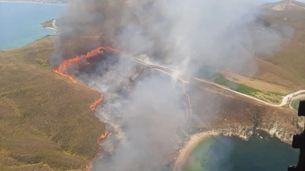 Balıkesir'e bağlı Avşa Adası'nda çıkan arazi yangınına havadan ve karadan müdahale ediliyor.