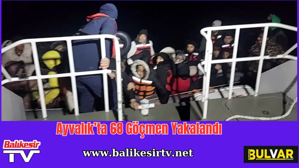 Balıkesir’in Ayvalık ilçesinde, 27’si çocuk 68 göçmen yakalandı.