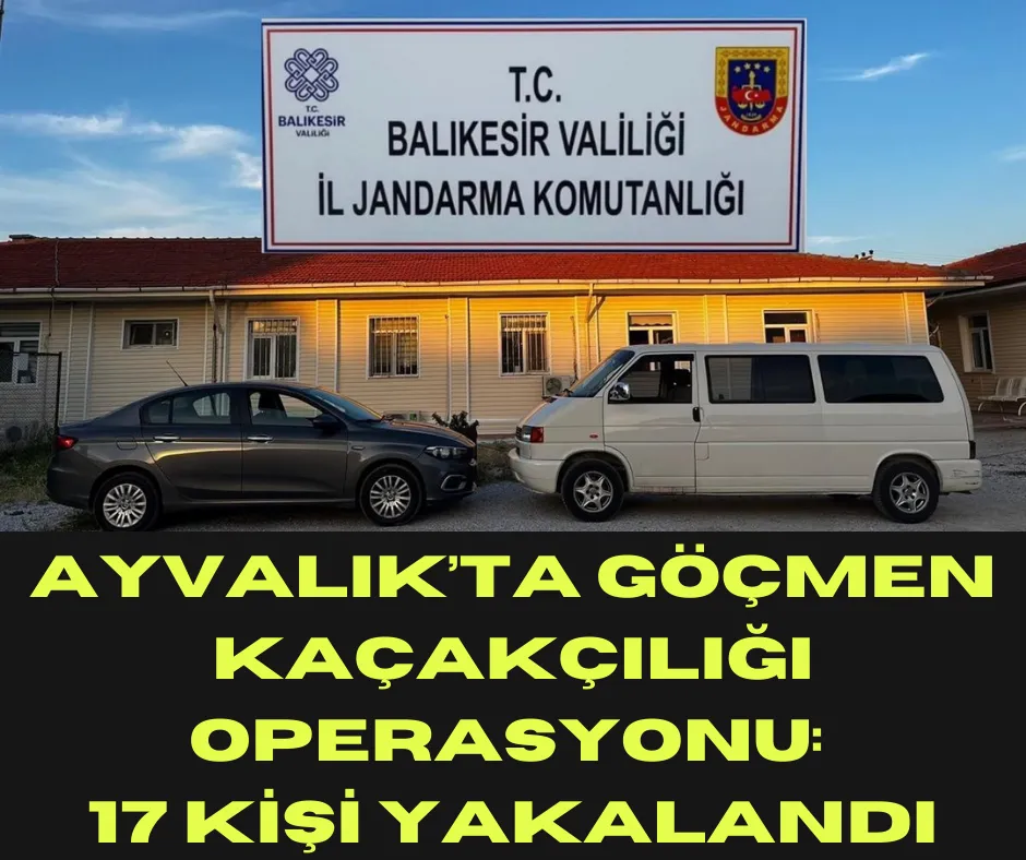 Balıkesir'in Ayvalık ilçesinde, yasa dışı yollarla Yunanistan'ın Midilli Adası'na gitmeye çalışan 15 göçmen ve 2 yabancı uyruklu organizatör, jandarmanın düzenlediği operasyonla yakalandı.