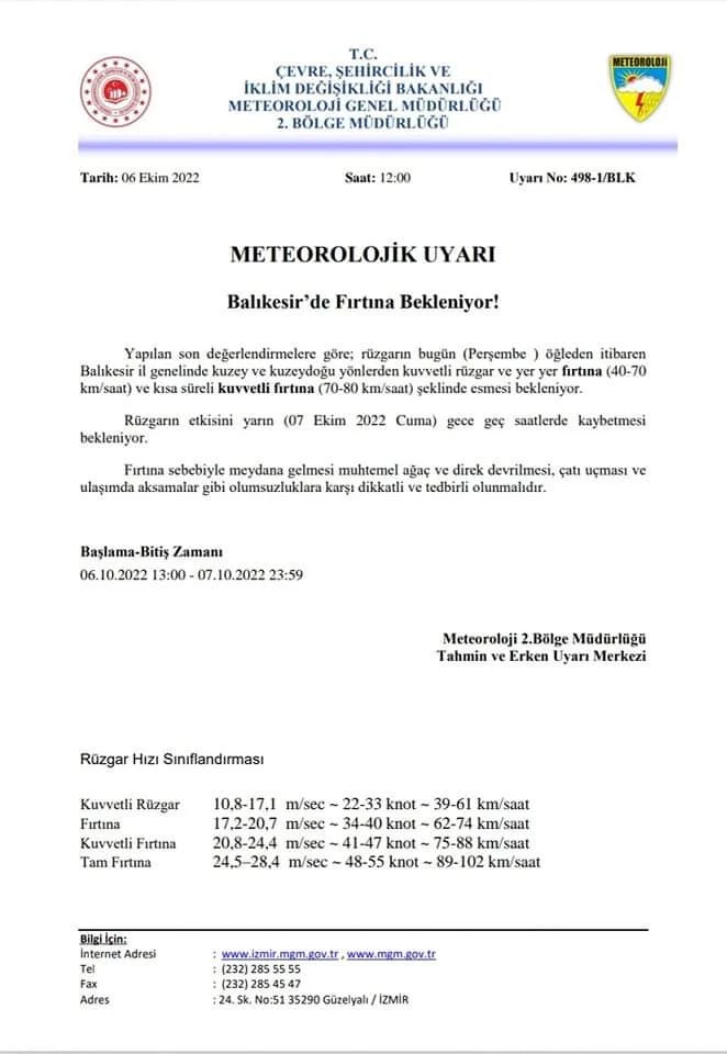 BALIKESİR'DE FIRTINA BEKLENİYOR