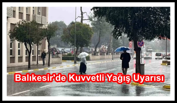 Meteoroloji Genel Müdürlüğü'nün açıklamasına göre, Balıkesir'de bu gece saatlerinden itibaren kuvvetli (21-50 kg/m2) merkez çevrelerinde (Altıeylül, Karesi, Balya, Savaştepe, Bigadiç, Sımdırgı, Kepsut) yerel olarak çok kuvvetli (50-75 kg/m2) ve batısında (Edremit, Havran, İvrindi, Burhaniye, Gömeç, Ayvalık) şiddetli (75-100 kg/m2) sağanak ve gök gürültülü sağanak yağış bekleniyor.