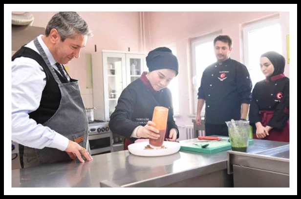 Balıkesir'in zengin bir bitki örtüsü, Ege ve Marmara'yı harmanlayan zengin bir mutfağa sahip olduğunu vurgulayan Tatlı, öğrencilerle öğrenim gördükleri alan ile ilgili sohbet etti. İl Müdürü Tatlı, "Yiyecek-içecek hizmetleri, turizm ve otelcilik gibi birçok hizmet sektöründe önemli bir iş koludur. Bu bölümde nitelikli bir eğitim alarak yiyecek-içecek hizmetleri sunan her türlü işletmede çalışabilir, çeşitli kariyer seçeneklerine de sahip olabilirsiniz. Mezun olduğunuzda gerekli niteliklere sahip olarak kendi işletmenizi de açabilirsiniz. Gönlünüzdeki hedefe ulaşarak hayatınızda muvaffak olmanızı dilerim. Bunun için çok çalışmanız, çok okumanız gerekiyor." diyerek öğrencilerin başarılarının devamını diledi.