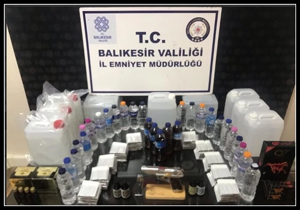 dinilen bilgiye göre, KOM ekipleri, Edremit ilçesinde sahte ve kaçak alkol üretimi ve satışı yapıldığı bilgisi üzerine çalışma başlattı. Yapılan çalışmalar sonucunda, ilçede 3 ayrı adrese operasyon düzenlendi. Operasyonlarda, 1 adet Ruger marka 9 milimetre çapında tabanca ve 1 adet şarjör, 8 adet 5 litrelik plastik bidonlar içerisinde etil alkol, 1 adet 5 litrelik plastik bidon içerisinde el yapımı alkol, 11 adet yarım litrelik plastik pet içerisinde el yapımı votka, 13 adet yarım litrelik plastik pet içerisinde el yapımı rakı, 5 adet yarım litrelik plastik pet içerisinde el yapımı viski, 4 adet cam şişe içerisinde viski aroması, bin adet doldurulmuş makaron sigara ve 46 adet cinsel içerikli ürün ele geçirildi. Operasyonda gözaltına alınan 3 şüpheli şahıs hakkında tahkikat başlatıldı. Şüphelilere, 5607 sayılı Kaçakçılıkla Mücadele Kanunu'nun 3. maddesi uyarınca 3 yıldan 8 yıla kadar hapis ve 100 bin güne kadar adli para cezası uygulanabileceği belirtildi.