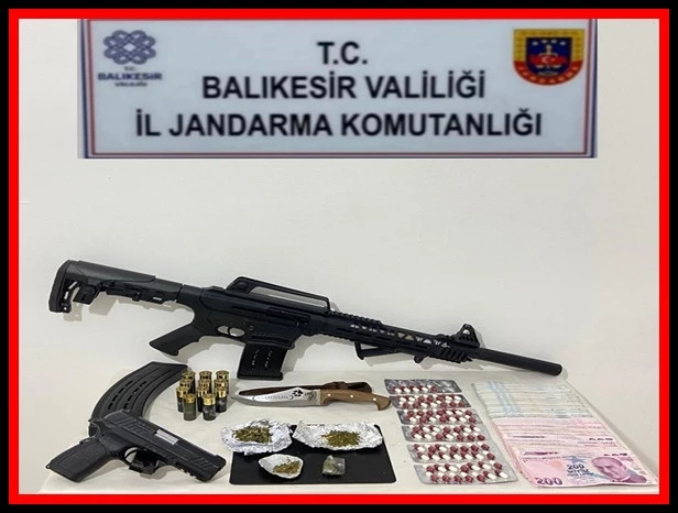 Operasyonda, 75 adet sentetik uyuşturucu hap, 40 gram kubar esrar, 1 adet tabanca, 1 adet av tüfeği, 11 adet fişek ve 19 bin TL suçtan elde edilen gelir ele geçirildiği kaydedildi.