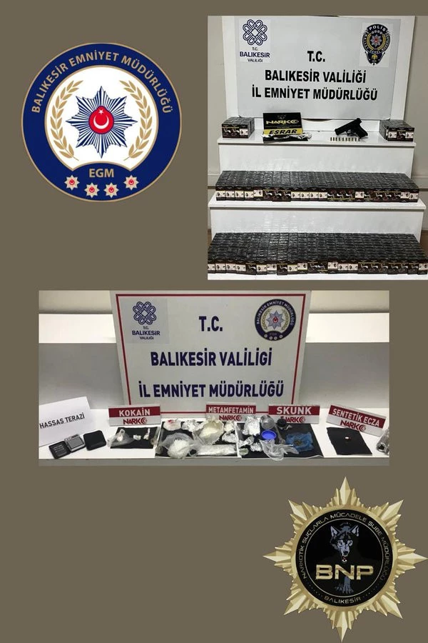 Balıkesir Narkotik Suçlarla Mücadele birimlerinin yaptığı iki ayrı operasyonda, uyuşturucu madde ve kaçak sigara ele geçirildi.