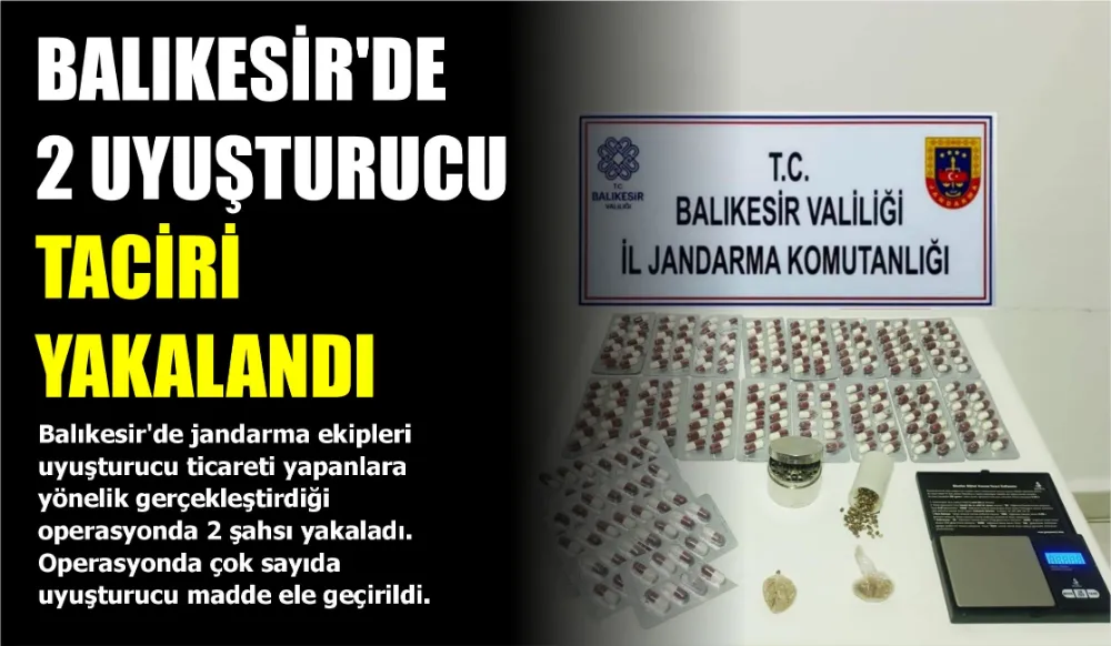 Balıkesir’de jandarma ekipleri uyuşturucu ticareti yapanlara yönelik gerçekleştirdiği operasyonda 2 şahsı yakaladı. Operasyonda çok sayıda uyuşturucu madde ele geçirildi.