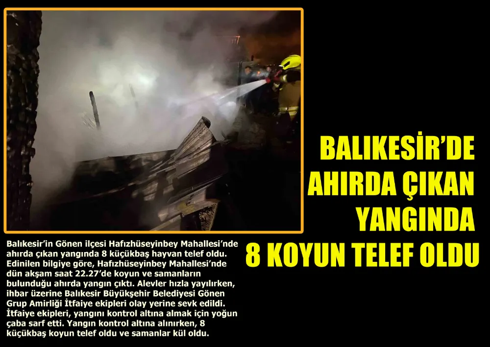 Alevler hızla yayılırken, ihbar üzerine Balıkesir Büyükşehir Belediyesi Gönen Grup Amirliği İtfaiye ekipleri olay yerine sevk edildi. İtfaiye ekipleri, yangını kontrol altına almak için yoğun çaba sarf etti. Yangın kontrol altına alınırken, 8 küçükbaş koyun telef oldu ve samanlar kül oldu.