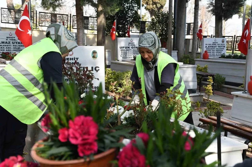 Balıkesir Büyükşehir Belediyesi, 18 Mart Çanakkale Zaferi ve Şehitleri Anma Günü kapsamında il genelindeki şehitliklerde kapsamlı temizlik çalışması yaparak şehit mezarlarını çiçeklerle donattı.