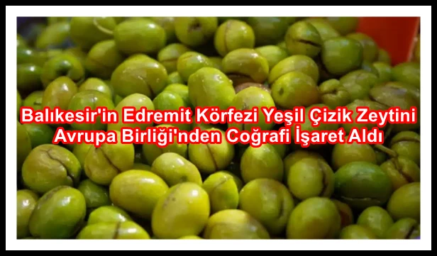Edremit Körfezi'nde yetişen ve Kazdağları'nın ve Madra Dağları'nın oksijeninde ve Ege Denizi'nin iyotuyla beslenen, bölgenin endemik bitkilerinden aldığı nefasetle lezzetlenen Edremit Körfezi yeşil çizik zeytininin, Avrupa Birliği'nden coğrafi işaret alması, Balıkesir'de sevinçle karşılandı.