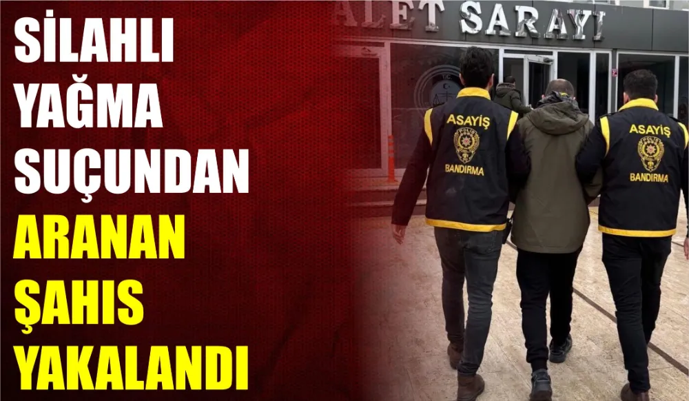 Bandırma İlçe Emniyet Müdürlüğü Asayiş Büro Amirliği ekiplerinin çalışmalarının sonucunda, silahlı yağma suçundan aranan Y.D. Bandırma ilçesinde saklandığı adreste yapılan operasyonla gözaltına alındı. Şahıs, emniyetteki işlemlerinin ardından cezaevine gönderildi.