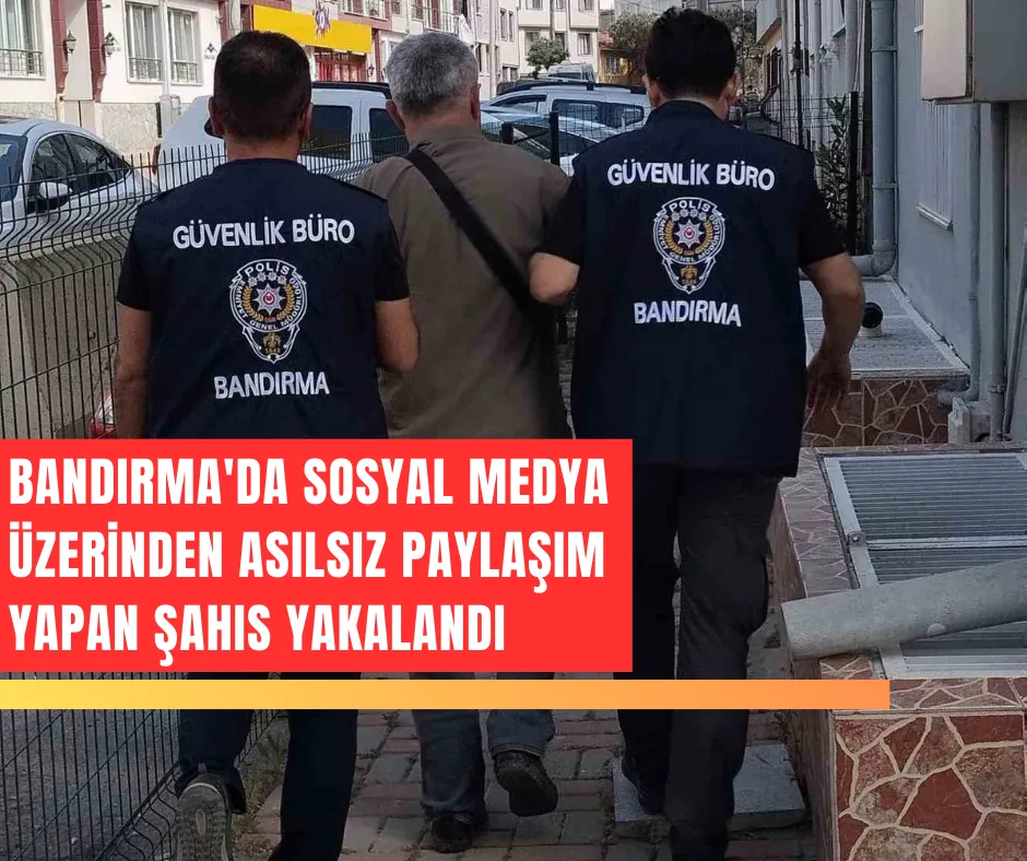 Balıkesir'in Bandırma ilçesinde Emniyet Müdürlüğü, sanal devriye hizmetleri sırasında, sosyal medyada asılsız bir paylaşım yapan kişiyi tespit etti ve yakaladı.