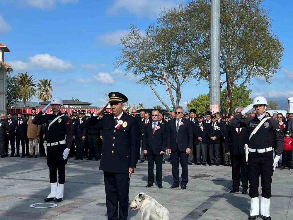 Atatürk Anıtı’na çelenk sunumuyla başlayan tören saygı duruşu ve İstiklal Marşı’nın okunmasıyla devam etti. Daha sonra İlçe Emniyet Müdürü Mesut Demirdaş, günün anlam ve önemini belirten konuşmasını gerçekleştirdi.