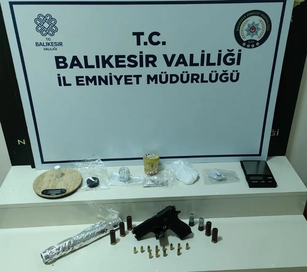 Bandırma’da Narkotik Suçlarla Mücadele Birimi bir adrese yönelik operasyon düzenledi. Operasyonda; 108 gram metamfetamin maddesi, bir adet 9 mm çaplı tabanca, 12 adet 9 mm tabanca fişeği, 7 adet av tüfeği kartuşu, 2 adet hassas terazi, 2 adet uyuşturucu madde kullanımı aparatı (payp) ve uyuşturucu paketlemede kullanılan alüminyum folyo ele geçirildi.