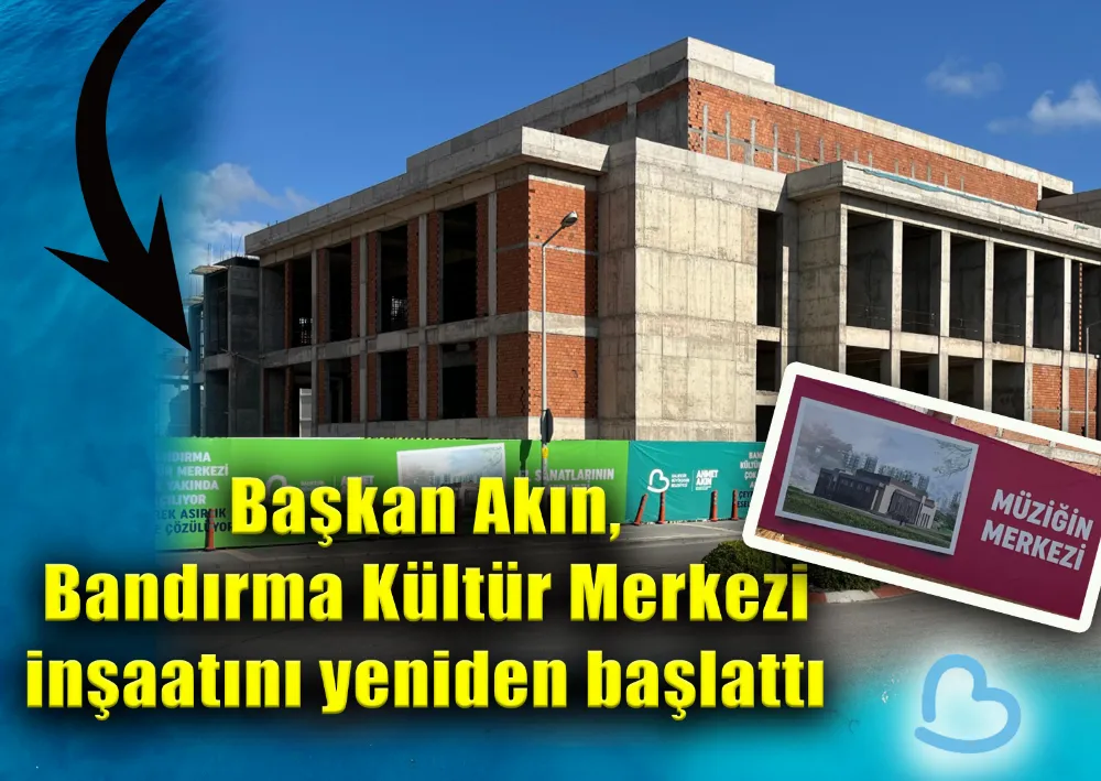 Balıkesir Büyükşehir Belediye Başkanı Ahmet Akın, 25 yıl önce Kültür ve Turizm Bakanlığı tarafından temeli atılan ancak bir türlü tamamlanamayan “Bandırma Kültür Merkezi” inşaatını tamamlıyor. Proje, modern etkinlik alanları ve sanat atölyeleriyle kültürel yaşama önemli katkı sağlayacak.