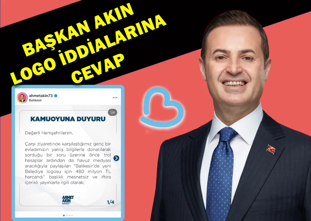 Balıkesir Büyükşehir Belediye Başkanı Ahmet Akın yazılı olarak yaptığı basın açıklamasında şu ifadelere yer verdi. "Çarşı ziyaretinde karşılaştığımız genç bir evladımızın yanlış bilgilerle donatılarak sorduğu bir soru üzerine önce trol hesaplar ardından da havuz medyası aracılığıyla paylaşılan “Balıkesir’de yeni Belediye logosu için 480 milyon TL harcandı” başlıklı mesnetsiz ve iftira içerikli yayınlarla ilgili olarak; Yeni logo için herhangi bir ücret ödendiği iddiası tamamen asılsızdır. Bu bilgi, yeni logonun kullanılmaya başlandığı dönemde bizzat benim açıklamamla duyurulmuş ve bir devlet kurumu olan Belediyemizin resmi internet sitesinde de paylaşılmıştır. Stoktaki hiçbir evrak ya da doğal ömrünü tamamlamamış hiçbir tabelada logo için değişiklik yapılmamıştır. Logo değişimi stoklar tükendikçe ya da doğal sebeplerle eskimiş tabelalarda gerçekleştirilmektedir. Zorunlu ve modernizasyon çalışmaları yapılması gereken yerler haricinde logo değişimi için Belediye bütçesinden ek bir gider kalemi kullanılmamakta ve ek bir satın alma yapılmamaktadır. Bir kez daha vurgulamak isterim ki; Balıkesir’de o eski alışkanlıkların olduğu dönem sona ermiş, şeffaf ve hesap veren bir yönetim anlayışı göreve başlamıştır. 480 milyon TL’yi bir logo yenileme ücreti olarak vermeyi hayal edebilecek anlayışa kimlerin sahip olabileceği herkesin malumudur. Milletin parasını, yetimin hakkını har vurup harman savuran ve 18 milyar TL borçla Belediyeyi devreden zihniyet, 31 Mart 2024 tarihinde yapılan seçimlerde Balıkesir halkının yüksek iradesiyle gereken cevabı almıştır. Hemşehrilerimizin bu cevabından gereken dersi çıkarmayan malum kesimlerin yalan, hezeyan ve iftiralarla dolu açıklamaları her zaman kaybetmeye mahkûm olacaktır. Bu yalan ve iftiralar bizi asla yıpratamayacak, tam aksine Balıkesir’imiz için çalışma şevkimize güç katacaktır. Bu iftirayı atanlar hakkında gerek şahsım gerekse Belediyemiz adına derhal hukuki süreç başlatılacaktır. Kamuoyuna ve Balıkesirli hemşehrilerime saygıyla duyurulur" açıklaması yaptı.