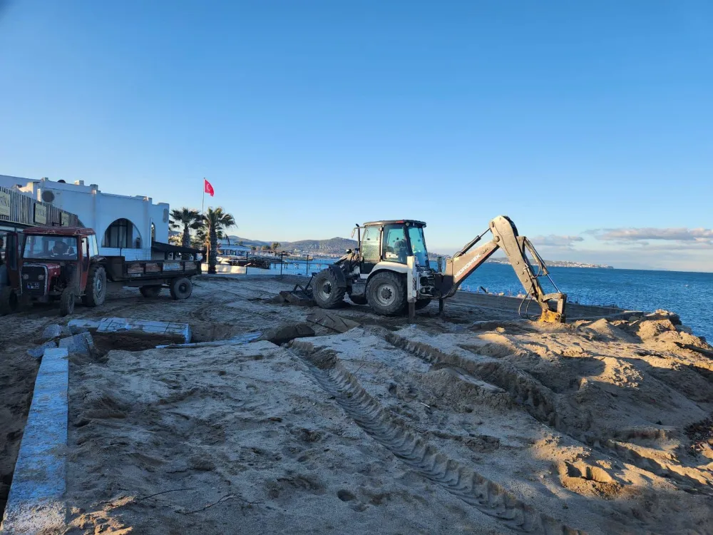 Burhaniye Belediyesi'nden izin alınmadan Ören Sahili, Paprika Beach işletmesinin önünde yapılan beton set imalatı hakkında vatandaşlardan gelen şikayetler doğrultusunda hızla harekete geçen Burhaniye Belediyesi Yapı Kontrol ve Fen İşleri Müdürlüğü ekipleri Ören Mahallesi’nde bulunan işletmenin deniz kenarına çektiği beton setleri yıkarak kıyıların, herkesin eşit ve serbest olarak kullanabileceği alanlar olmasına yönelik çalışmalarını hızla tamamlayarak sahil şeridini eski şekline kavuşturdu.