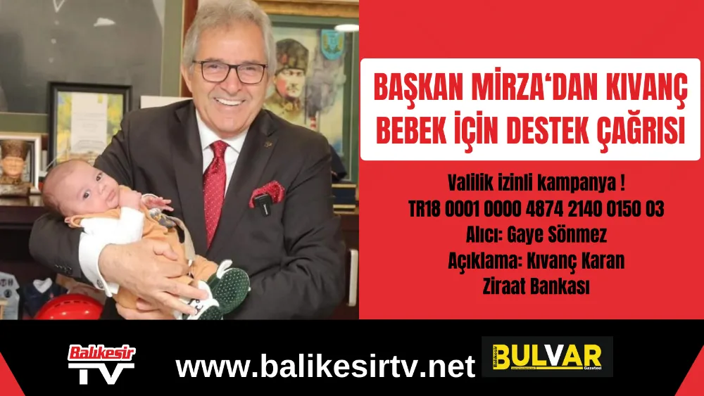 Bandırma Belediye Başkanı Dursun Mirza, SMA Tip 1 hastası Kıvanç Karan'ın sağlığına kavuşması için vatandaşlardan destek istedi.