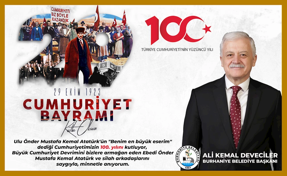 "Ulu Önder Mustafa Kemal Atatürk'ün "Benim en büyük eserim" dediği Cumhuriyetimizin 100. yılını kutluyor,