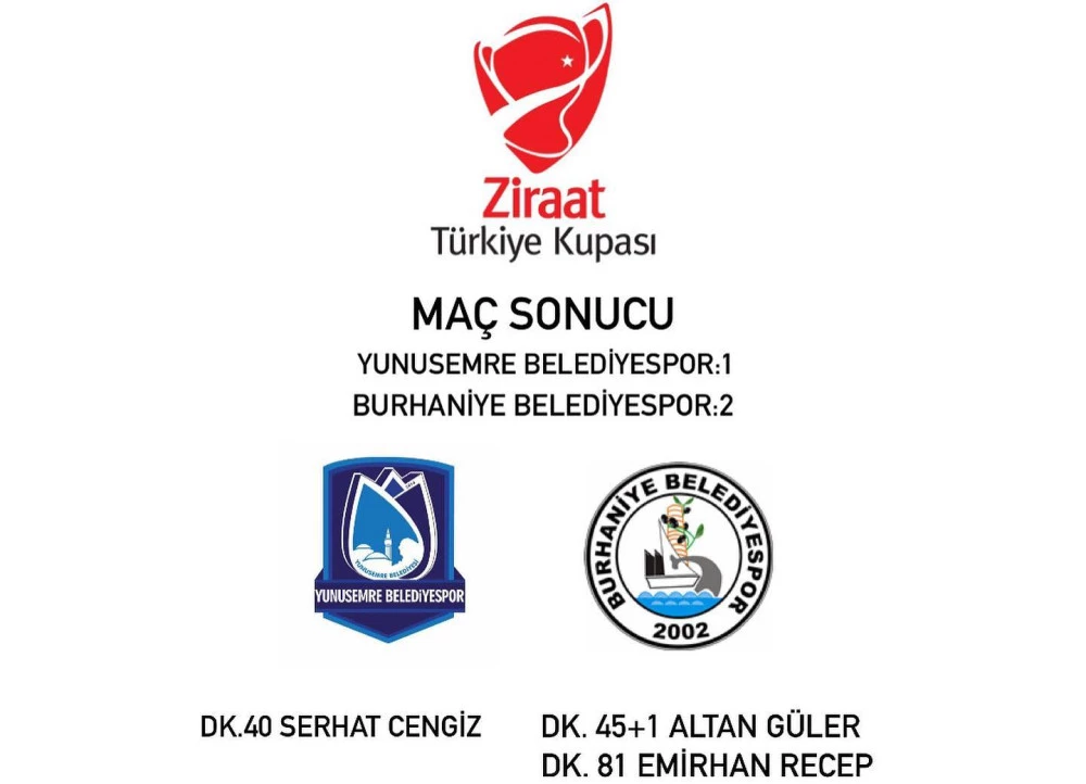 İkinci yarıda baskısını artıran Burhaniye Belediyespor, Emirhan Recep'in 87. dakikada attığı golle skoru 2-0'a getirdi. Yunusemre Belediyespor, 90. dakikada bulduğu golle durumu 2-1'e getirse de bu gol turu değiştirmeye yetmedi.