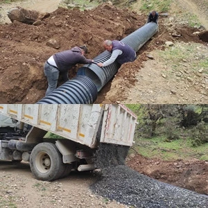 Kurucaoluk’un yayla yolunda, yağmur suyu geçişleri için 4 ayrı yere koruge boru montajı gerçekleştirildi. Çiftçilik ve hayvancılıkla uğraşan vatandaşların, yağışlı havalarda yayla yolunu kullanmasında yaşadıkları sorunlara kayıtsız kalmayan Burhaniye Belediyesi, yağmurlu havalarda yaşanan ulaşım problemini gidermiş oldu. Yağmur suyu geçiş kanallarında yapılan çalışmalarla 4 ayrı noktaya boru atılarak yolun yağışlar nedeni ile deforme olması önlenmiş oldu. Ayrıca daha önceden tahrip olan yollarda yapılan çalışmalar ile yenilendi.