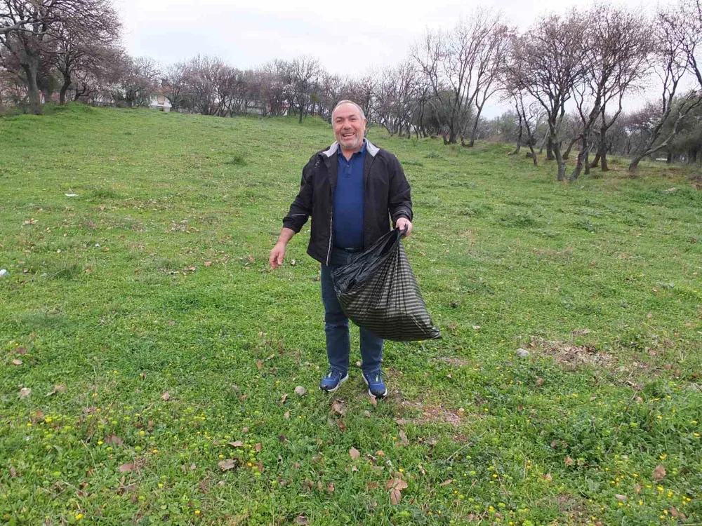 Burhaniye Ören Mahallesinde oturan 58 yaşındaki Lütfü Kotan, elinde çöp torbası ile temizlik yapıyor. Ören camiin etrafında bulunan yeşil alanlardan pet şişe, poşet ve sigara paketlerini toplayan Lütfü Kotan, “Çöp gördüğüm zaman dayanamıyorum. Nereye gidersem elimde poşetle çöp topluyorum. Herkes çevreci olmalı. Hepimiz çevreye sahip çıkmamız lazım” dedi.
