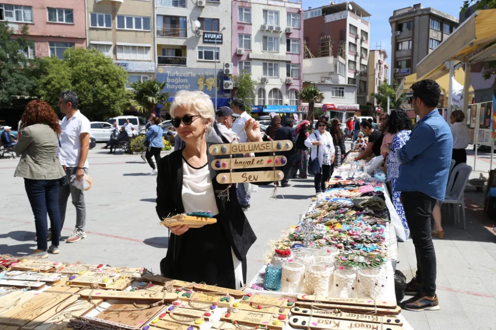 Öğretmenler ve öğrenciler tarafından okul atölyesinde hazırlanan el sanatları ve resimler, bugün saat 20.00'ye kadar Cumhuriyet Meydanı'nda ziyaretçilerini bekliyor.