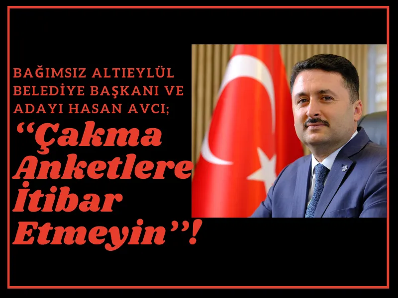 Altıeylül Belediye Başkanı ve Bağımsız Belediye Başkan Adayı Hasan Avcı, taraflı anketlerle dezenformasyon yapıldığını iddia ederek, bu durumu sosyal medyada paylaştığı bir video ile kamuoyuna duyurdu.