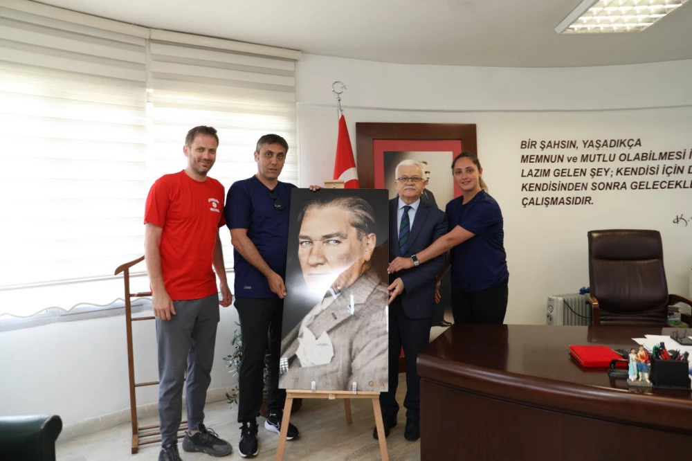 Dijital Baskı ile yapılmış Granit Mustafa Kemal Atatürk Portresi de Çengelköy Voleybol Takımı tarafından, Başkan Deveciler'e hediye edildi.