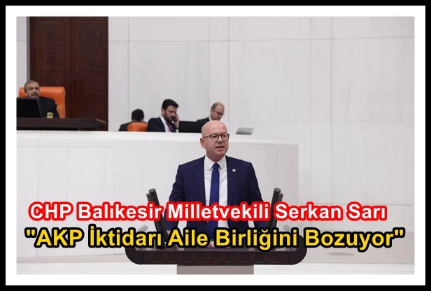 CHP Balıkesir Milletvekili Serkan Sarı, kurulacak fon ile ailelere destek vermeyi planlayan AKP iktidarının kurduğu ekonomik sistem ile aile bütünlüğünü bozduğunu vurguladı. Sarı, “Aile birliğinden bahsediyorsunuz, destek vermeyi vadediyorsunuz ama ekonomik olarak en zor durumda olan emekli ailelerimize bu desteği niye vermiyorsunuz? Kurduğunuz yeni ekonomik sistem zenginin ve yandaşın daha çok zenginleştiği bir düzen yarattı. Kurduğunuz düzende gençler pudra şekeri çeker oldular. Sayenizde gençlerimizin gelecekleri uyuşturucu baronlarının elinde mahvoluyor, ailelerinin önünde eriyor ve tükeniyorlar. Aile bütünlüğü diye bir şey bırakmadınız. Sayenizde yolsuzluk, hırsızlık, mafyacılık sokaklarımızı sarmış; her köşe başında uyuşturucu satılır hâli almıştır. Gençlerimiz ailelerinden koparılarak çetelerin eline teslim edilmiştir. Sizin engel olamadığınız uyuşturucu satıcıları yüzünden gençlerimiz ve aileleri uyuşturucu bağlılığıyla mücadele ediyor. Aile kurmak isteyen işçi, emekçi, memur, esnaf, çiftçi olan gençlerimize bunların hayalini bile kuramadığı bir dönem yaşatıyorsunuz. Vermeyi planladığınız 150 bin lira krediyle hangi derdi çözeceksiniz anlamak mümkün değil. Gençlerimiz iş bulamadıkları için ailelerinin yanında yaşamak zorunda kalıyorlar” diye konuştu.