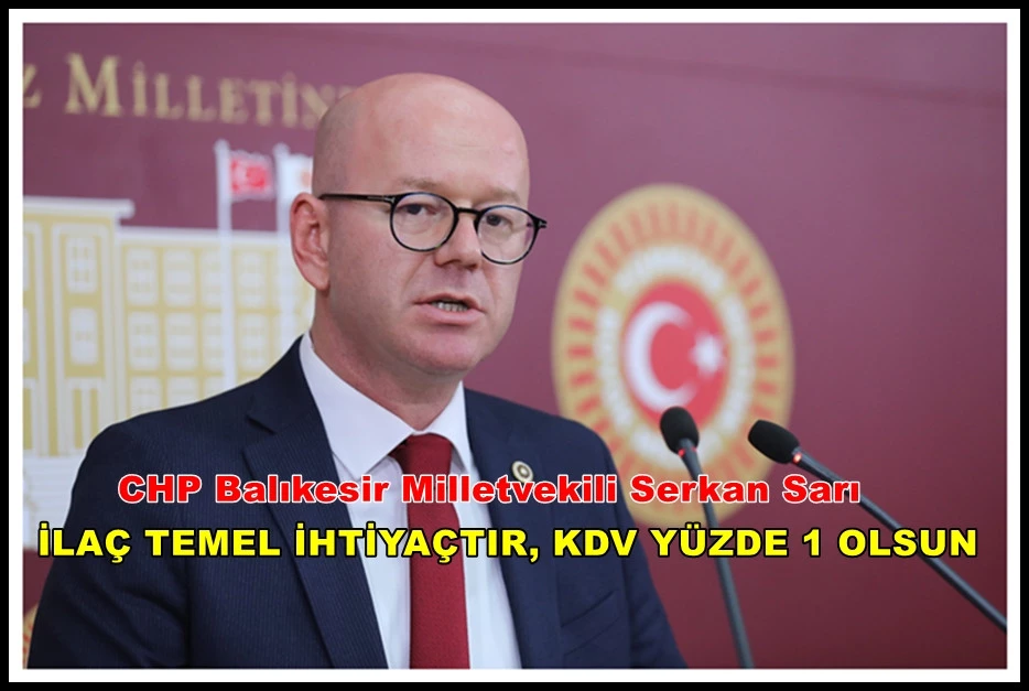 CHP’li Serkan Sarı, “Hastalarımızın tedavisinde hayati derece öneme sahip ilaçlar ile ilgili olarak temel gıda ürünlerine uygulandığı gibi vatandaşlarımızın sağlıklı yaşam hakkı için ilaçların da KDV’si yüzde 1 olmalıdır” dedi.