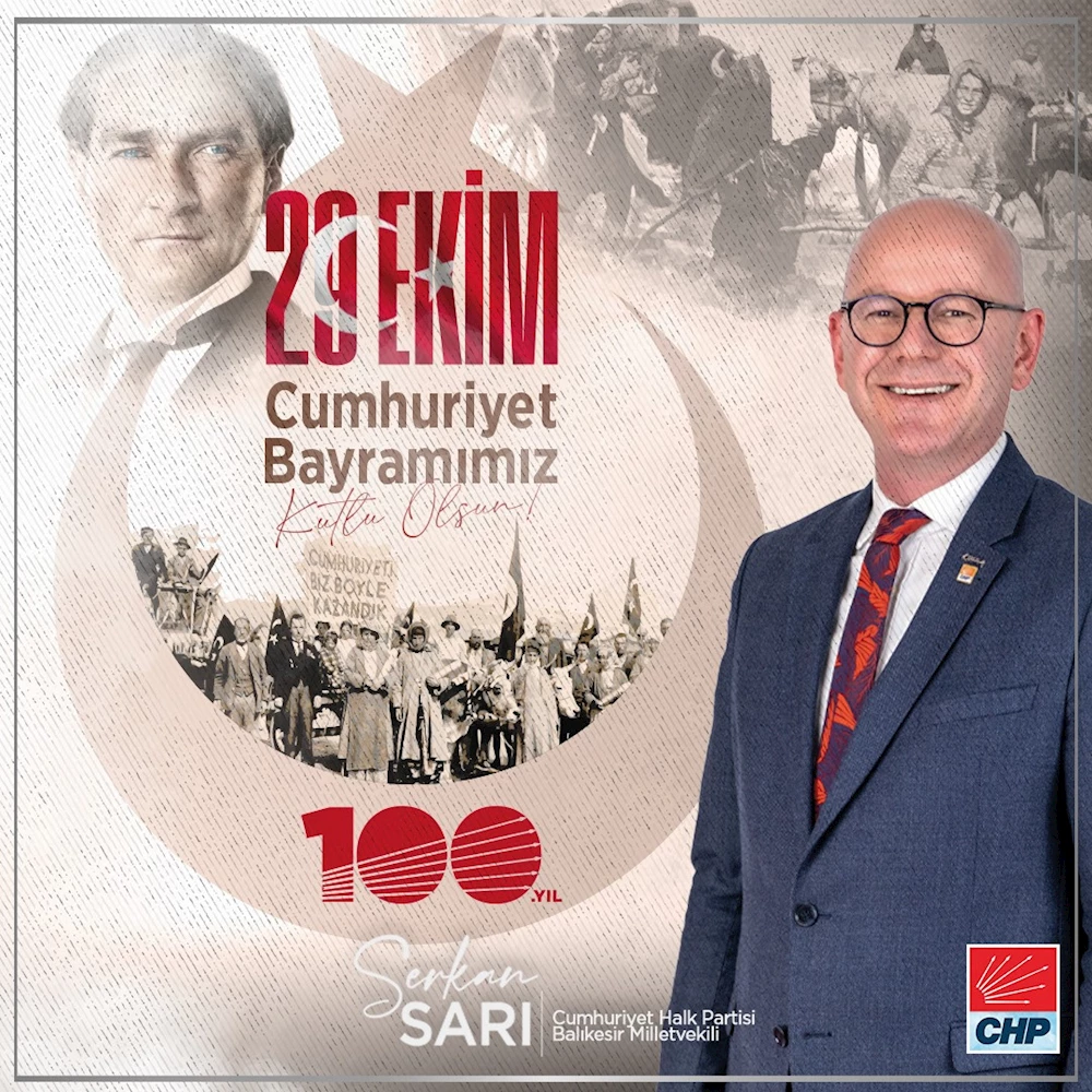 CHP Balıkesir Milletvekili Serkan Sarı, 29 Ekim Cumhuriyet Bayramı’nın 100. yılında yaptığı açıklamada Cumhuriyet’in kuruluş ve gelişme dönemlerinde, eğitimde, kültürde, hukukta ve daha pek çok alanda aydınlanma yolunu açtığı vurgusunu yaptı. CHP’li Sarı mesajında şu değerlendirmelerde bulundu: