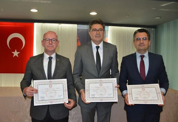 14 Mayıs seçimlerinde CHP listelerinden milletvekili seçilen; Ensar Aytekin, Serkan Sarı ve Burak Dalgın Balıkesir Öğretmenevi'nde düzenlenen 28. Dönem milletvekili mazbatalarını aldılar.