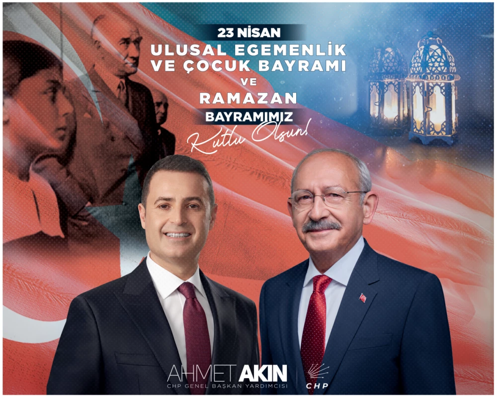 CHP’li Akın, “Hem 23 Nisan Ulusal Egemenlik ve Çocuk Bayramı hem de Ramazan Bayramı ile iç içe çifte bayram kutlamanın mutluluğunu yaşıyoruz. Bayramlarımız kutlu olsun” dedi.