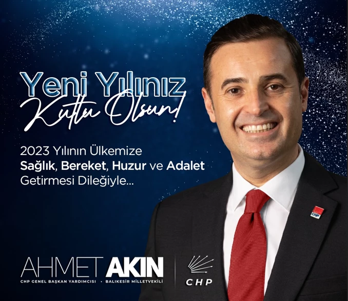 CHP Genel Başkan Yardımcısı Ahmet Akın, Türk Milleti’nin yarınlara umutla baktığını ve yeni yılda Türk Milleti’nin umutla beklediği tüm dileklerinin gerçekleşeceğini söyledi. Ahmet Akın, “Tüm zorluklara göğüs gerdiğimiz bir yılı geride bırakıyoruz. Yeni yıl umudumuzdur. Milletimizin sağlık, mutluluk ve huzur içinde geçirmesini arzuladığımız bir yılı karşılıyoruz. 2023 yılı tüm güzellikleriyle milletimin, ülkemin olsun!”