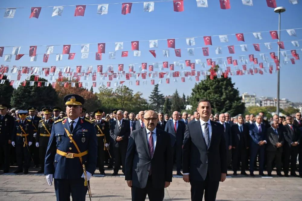 Balıkesir'de Cumhuriyet'in 101'inci yıl dönümü kutlamaları kapsamında Atatürk Anıtı’na çelenk sunma töreni yapıldı.