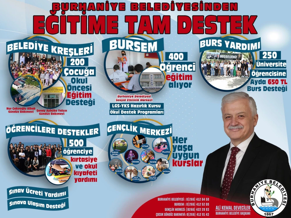Burhaniye Belediyesi Sosyal Belediyecilik anlayışıyla hayata geçirdiği eğitim projelerinde Balıkesir’de öncü belediye olmaya devam ediyor. Eğitimin her dalında yaptığı yatırımlarla çocuk, genç demeden yeni nesillerin yetişmesine imkan sağlayan Burhaniye Belediye Başkanı Ali Kemal Deveciler, ilçede yaşayan ailelerin eğitim yükünü üstleniyor.