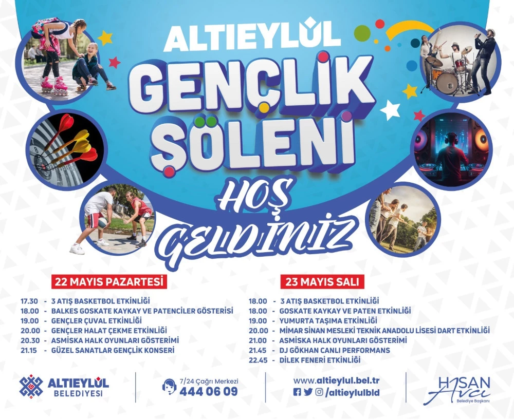 "Vatandaşlarımıza duyurulur,17-18 Mayıs tarihleri arasında Gazi Mustafa Kemal Atatürk Yaşam Kompleksi içerisinde yer alan Asuva Parkta gerçekleştirecek olacağımız Gençlik şölenimiz, hava muhalefeti nedeni ile 22/23 Mayıs Pazartesi/Salı gününe ertelenmiştir"ifadelerine yer verildi.