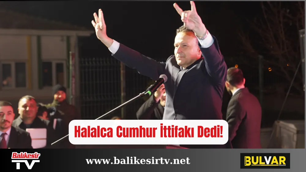 Sözlerine, ‘Güçlü geliyoruz, Cumhur İttifakı geliyor’ diyerek devam eden Cumhur İttifakı adayı Eray, “Halalca’dan sesleniyorum; Al Bayrak altında durmaktan onur duyan, bu Vatan üzerinde yaşamaktan onur duyan, Minarelerde okunan ezanlardan mutluluk duyan, Türk evladı olmaktan gurur duyan herkese selam olsun. Bir yerel seçim daha geliyor. Bu seçimde de zillet ittifakı karşımızda. Kapalı kapılar ardında yapılan görüşmeler görsel olarak, sosyal medyada ortaya çıktı. Amaç, daha önceki yerel seçim hezimetinin intikamını almak. Amaç, Cumhurbaşkanımız Recep Tayyip Erdoğan’dan, Bilge Lider Doktor Devlet Bahçeli’den intikam almak. Böyle bir şey olabilir mi? Burada Cumhur İttifakı var! Bu seçimler, Devlet bekasının perçinlendiği tarihi bir karar anı olacak. Cumhurbaşkanımız Balıkesir'e geldiğinde Cumhur İttifakı adayları; Büyükşehir’de Yücel Yılmaz, Altıeylül’de Mesut Eray olarak, bizlerin elini kaldırarak sizlere emanet etti. Burada önemli olan konu hem büyükşehir hem ilçe belediyesi hem de meclis üyeleri seçilirken üçlü olması. Üçlü olursa güçlü olur, Cumhur İttifakı olur.” dedi.