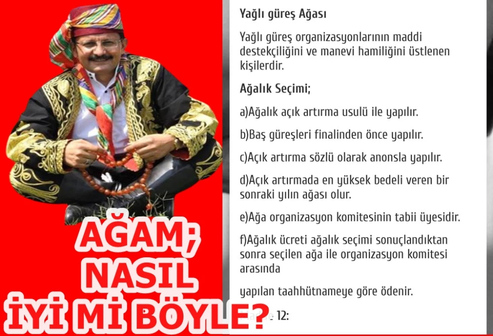 Yağlı güreşlerde ağalık kurumsal bir kimlik olması yanında ağalar da topluma örnek insanlar arasından seçilir. Balıkesir’de bu hafta sonu 63.sü yapılan Cihan Pehlivanımız gurur kaynağımız ve güreşlerde de final olan, Geleneksel Kurtdereli Mehmet Pehlivan Yağlı Güreşleri’nde geçtiğimiz sene bir ağalık ihalesi yapılmadı.Yapılan son ağalık ihalesi ise 561 bin liraya Abdullah Altıntaş almıştı .O dönemde yerel basında ağalık parasının ödenmediği de gündeme gelmişti. Gecen yıl dualı çayıra ağalık koçu da çıkarılmadı . Bu sene ağalık ihalesi yapılacak dedi Balıkesir Büyükşehir Belediyesi başkanı Yücel Yılmaz...