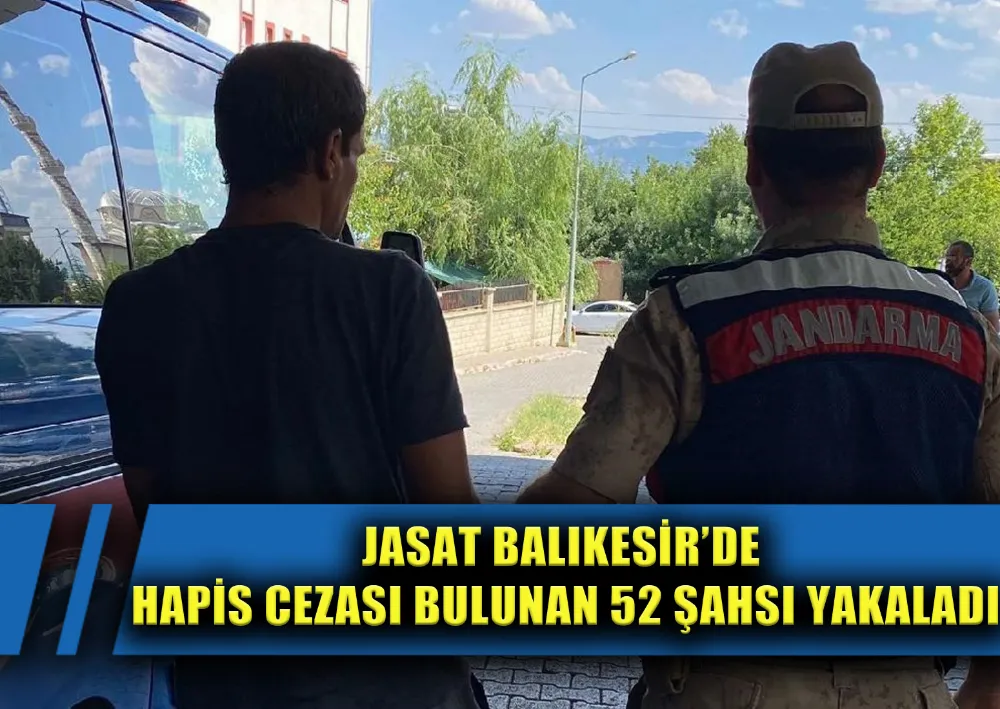 Balıkesir İl Jandarma Komutanlığı, suçların azaltılması, önlenmesi ve suçluların yakalanması maksadı ile Jandarmanın Dedektifleri olan Jandarma Suç Araştırma Timlerinin (JASAT) yapmış oldukları özverili çalışmalar neticesinde geçtiğimiz bir haftada aralarında 5’i 10 yıl ve üzeri hapis cezası olmak üzere çeşitli suçlardan hapis cezası bulanan toplam 52 şahsı yakalayarak adli makamlara teslim etti. Balıkesir İl Jandarma Komutanlığı, emniyet, asayiş ve kamu düzenin sağlanması ile suçların azaltılması, önlenmesi ve suçluların yakalanmasına yönelik çalışmalara aralıksız olarak devam edeceklerini bildirdi.