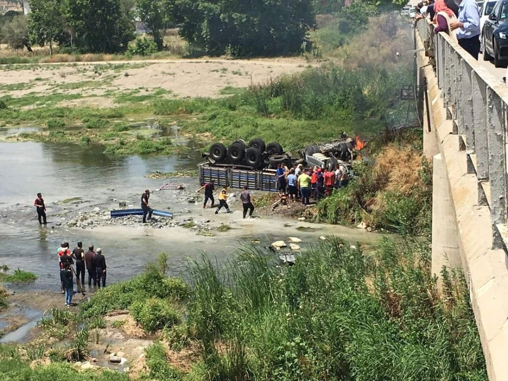 Bigadiç’te Simav Çayı köprüsünden bir kamyon henüz öğrenilemeyen bir nedenle aşağıya uçtu.