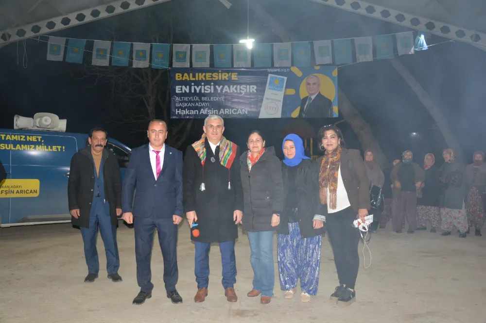 Seçim çalışmalarına tam gaz devam eden iyi Parti Altıeylül belediye başkan adayı Hakan Afşin Arıcan çalışmaları kapsamında önceki akşam kırsal Aliağa ve Dereköy mahallelerini ziyaret etti.