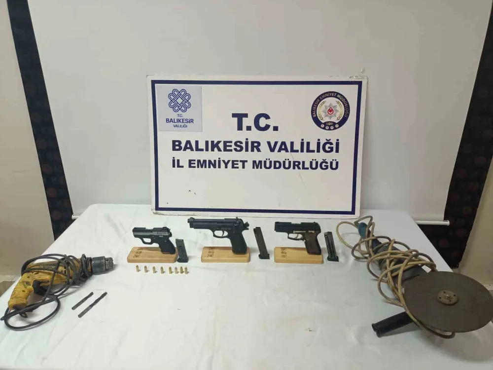 Edinilen bilgiye göre, Balıkesir İl Emniyet Müdürlüğü Edremit Kaçakçılık ve Organize Suçlarla Mücadele (KOM) ekiplerince yapılan çalışmada Edremit’te kurusıkı tabancaları, işlem yaparak gerçek silaha dönüştüren bir atölyeye operasyon düzenlendi. Yapılan operasyonda, 1 adet ruhsatsız tabanca, 1 adet namlusu dönüştürülmüş ruhsatsız tabanca, 1 adet namlu değişimi işlemi devam eden kurusıkı tabanca, 3 adet şarjör, 8 adet 7.65mm mermi, 1 adet namlu kesme işlemi için kullanılan spiral, 1 adet namlu açmada kullanılan matkap, 2 adet namlu açmada kullanılan matkap ucu ele geçirildi. Yapılan operasyonda A.D. gözaltına alınarak adli işlemlere başlanıldı.