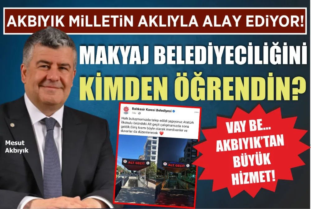 Akbıyık, Karesi ilçesi sınırları içerisinde bulunan Atatürk İlkokulu önündeki alt geçit üzerinde yaptığı ‘makyajı’ hizmet diye yutturmaya çalıştı.