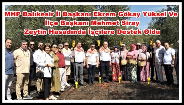 MHP Balıkesir İl Başkanı Niyazi Tunç ve Milletvekili Ekrem Gökay Yüksel, zeytin hasadı sürecinde üreticilere destek vererek, emekçilerin yanında oldular. Ayvalık İlçe Başkanı Mehmet Siray ve il ve ilçe yönetim kurulu üyeleriyle birlikte zeytin hasadına katılan Tunç ve Yüksel, işçilere moral vermenin yanı sıra bereketli bir hasat dönemi dilediler.